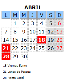 FESTIVOS ABRIL 2025 24/03/2025 Hola Se informa que los dias VIERNES 18 de ABRIL LUNES 21 de ABRIL LUNES 28 de ABRIL Abrimos de 09:00 a 14:00 SIN CLASES DIRIGIDAS Gracias Un saludo Tonus "Sport & Health"